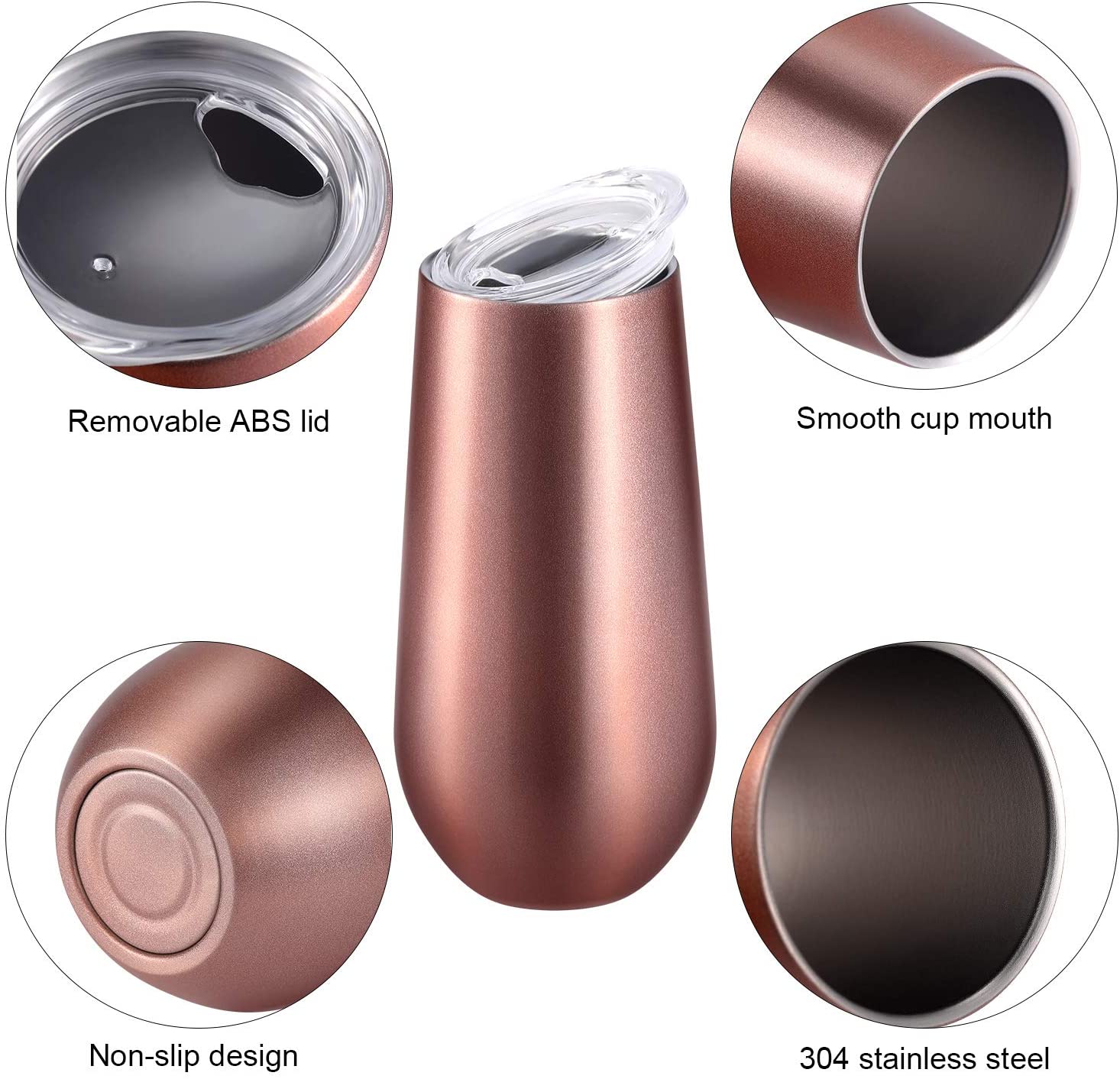 MATERIAL: Das Champagnerglas besteht aus Edelstahl 304, der Deckel aus ABS. Es lässt sich leicht mit Wasser abwaschen und trocknen.